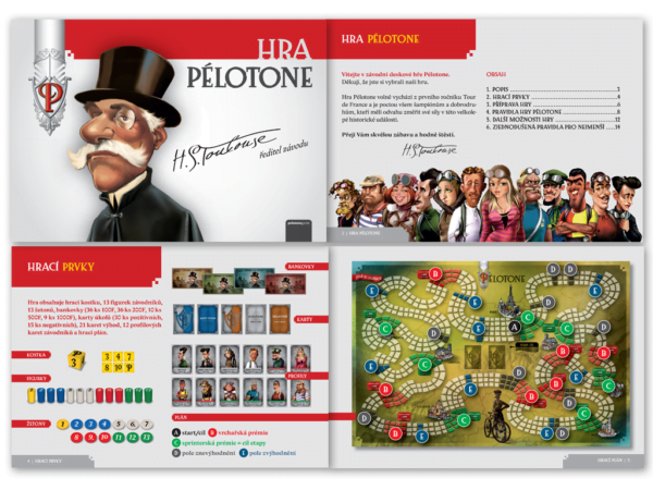 Zamilujte si jednotlivé závodníky díky jejich životním příběhům a rozhovorům s nimi. Složíte si tým z vrchařů, sprintérů, klasikářů nebo si zvolíte univerzální tým? Správný výběr týmu je klíčový a může přinést velké zvraty. Těmi je desková hra Pélotone doslova napěchována – obsahuje totiž dva balíčky karet (karty výhod a karty úkolů).